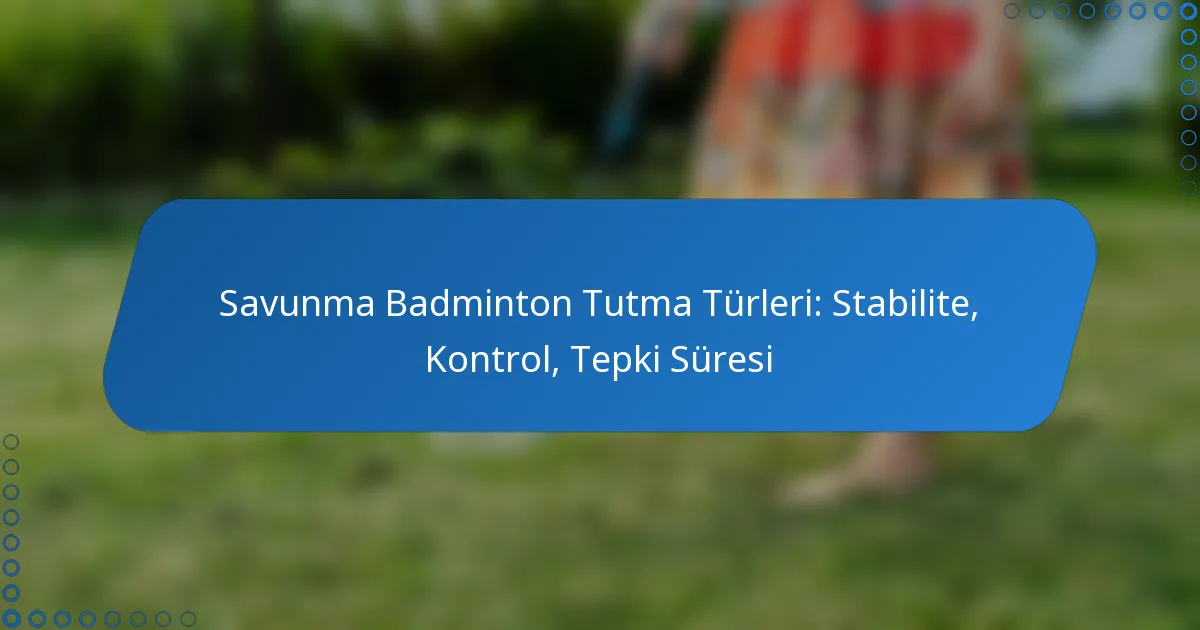 Defansif badminton tutuşları, sahada stabilite, kontrol ve reaksiyon zamanını geliştirmek için kritik öneme sahiptir. Önemli tutuş türleri arasında forehand, backhand, evrensel ve V-tutusu yer alır; bu tutuşlar, oyuncuların çeşitli oyun durumlarına etkili bir şekilde yanıt vermesine olanak tanıyan belirli defansif stratejilere ve tekniklere hitap eder.