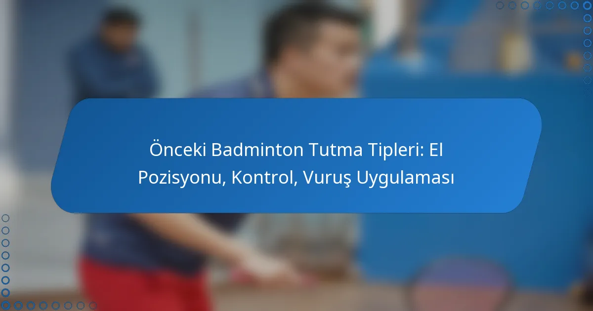 Badminton tutuşlarının temel özellikleri, nasıl tutuldukları ve oyun üzerindeki etkileri etrafında döner. Forehand tutuşu, oyuncuların güçlü atışlar yapmalarını sağlarken, backhand tutuşu hassasiyet ve kontrol üzerine odaklanır. Bu tutuşları anlamak, korttaki performansı optimize etmek için esastır.
